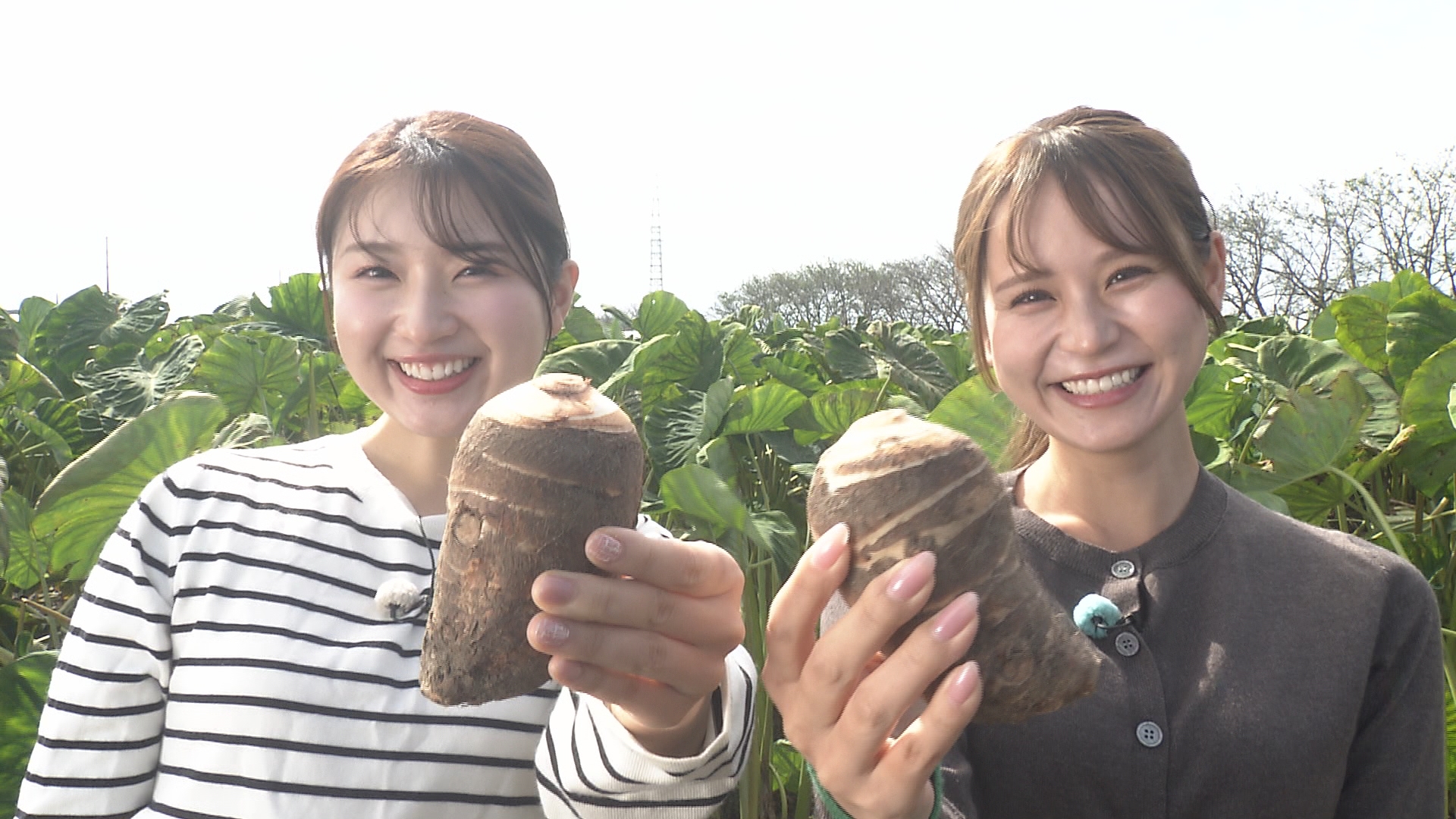 リポーターは磐田市が生産量日本一を誇る海老芋の特徴や美味しさの秘密を生産者から伺います。