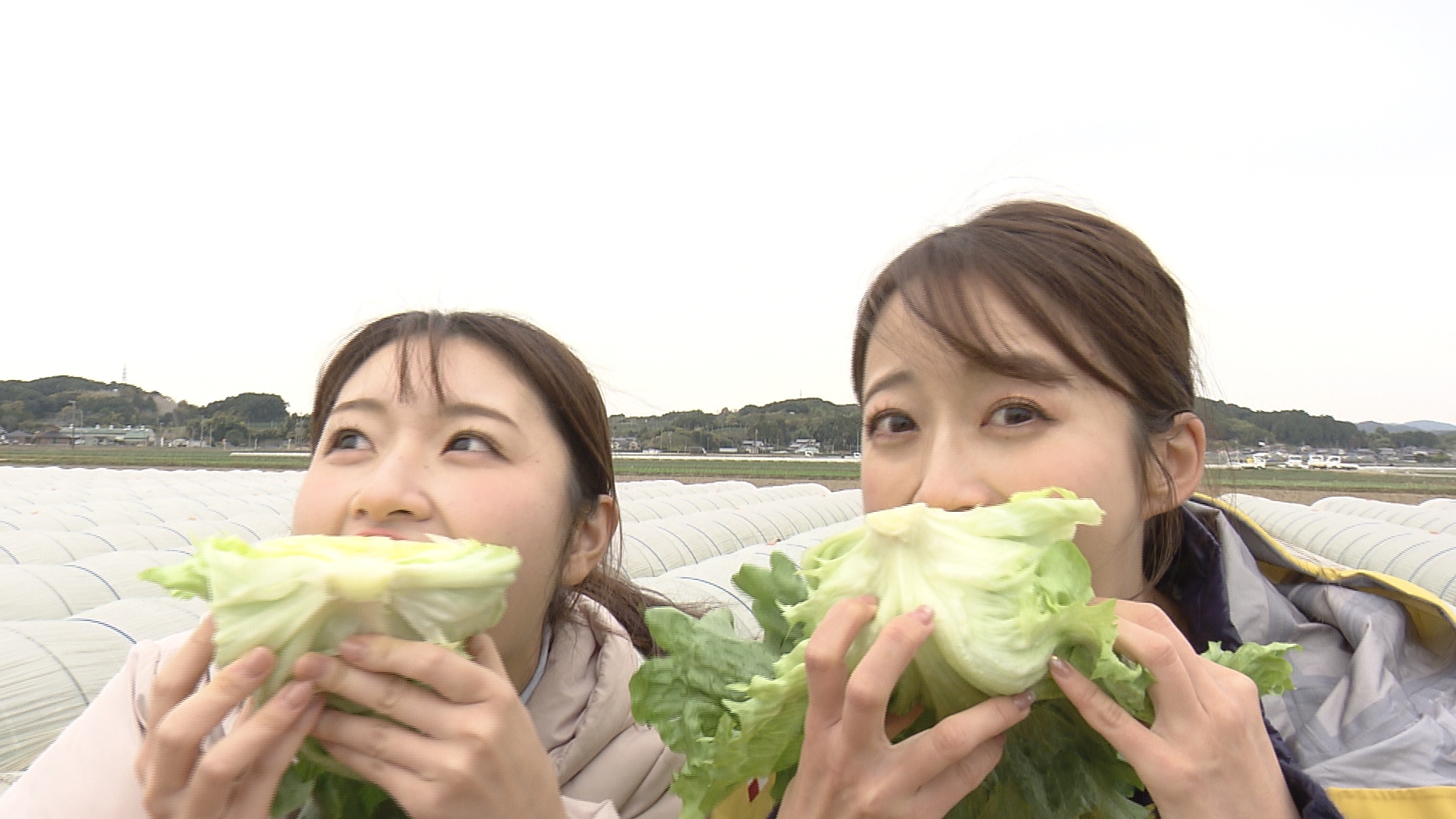 リポーターが森町の生産者の方からレタスの県統一ブランドとして評価の高い